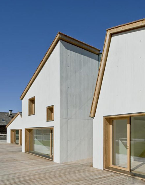 建筑外墻都是雙層的,暴露的的白色混凝土;結(jié)構(gòu)采用木制構(gòu)架。屋頂采用手切的松木屋面板瓦。 較低地坪的大開窗周圍覆蓋以豎向松木板。入口空間也采用暴露的混凝土,清晰的描繪出建筑結(jié)構(gòu)。僅僅在畫廊層采用了木頭。窗口帶來的不同景致,將群山景色送入眼簾。較低地平層的教室有近80平方米,是三個教室中最大的。以清晰、簡潔的線性設(shè)計。(幼兒園設(shè)計)
