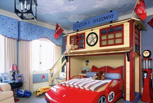 以汽車造型打造出的床和船造型由著異曲同工之妙,以汽車修理元素作為兒童房的主題,空間允許愛可以搭建一個(gè)二層小閣樓,這樣可以讓孩子在這里盡情的玩耍,天花板則是可以裝飾成天空色,抬頭仰望就可以在自己家的天花板上就能看到藍(lán)天白云,相信這樣的兒童房裝飾主題孩子一定會(huì)非常的喜歡。